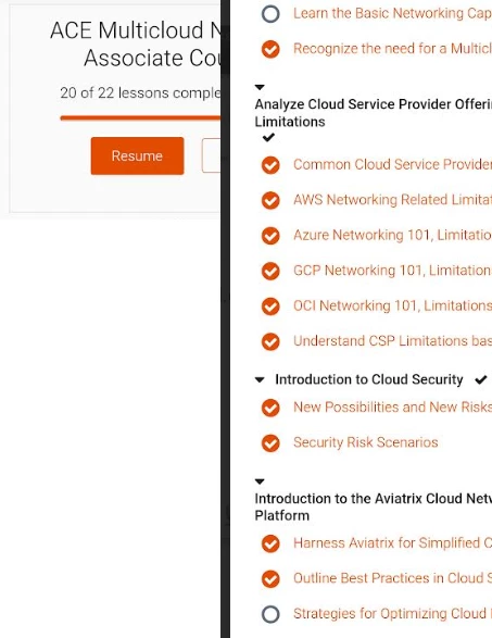 I was going through the course ACE Multicloud Network Associate Course. I have completed all the modules, still two of the modules are marked incomplete. Due to this I am unable to take the exam.