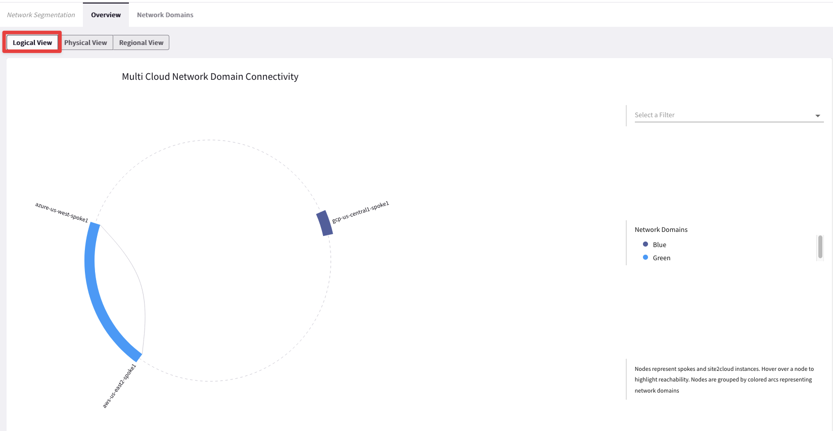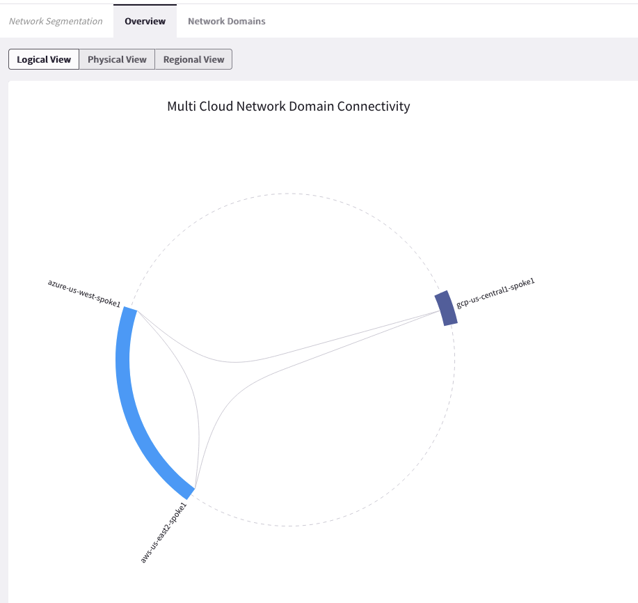 Now you will see that the spoke gateways in all three clouds are connected. This is because the Blue and Green Network Domains are directly connected: