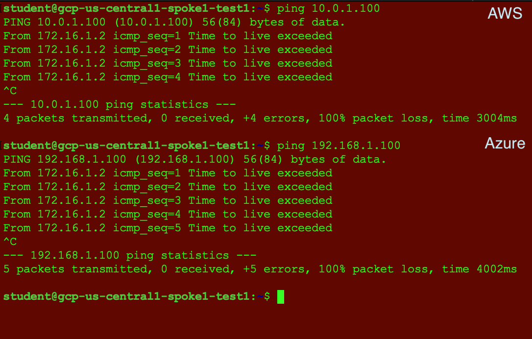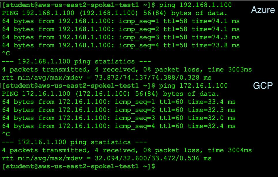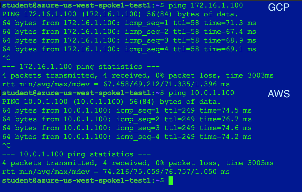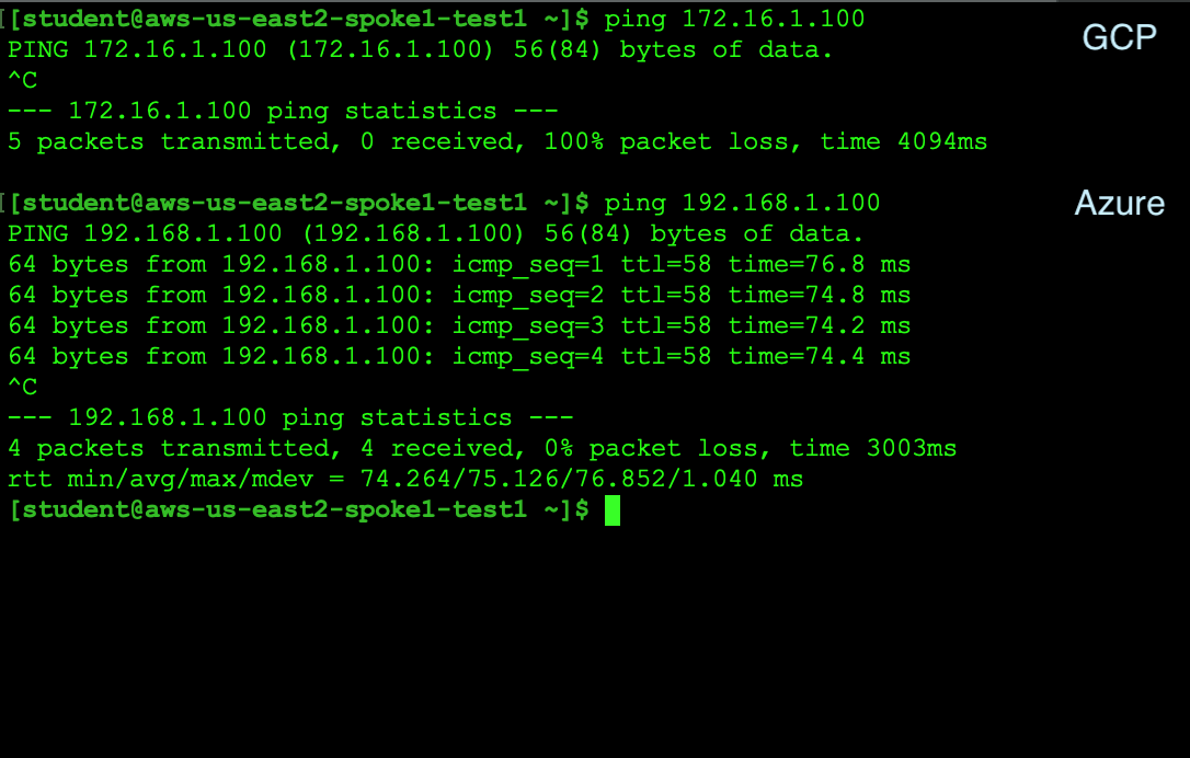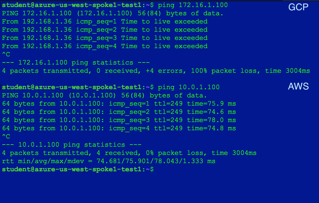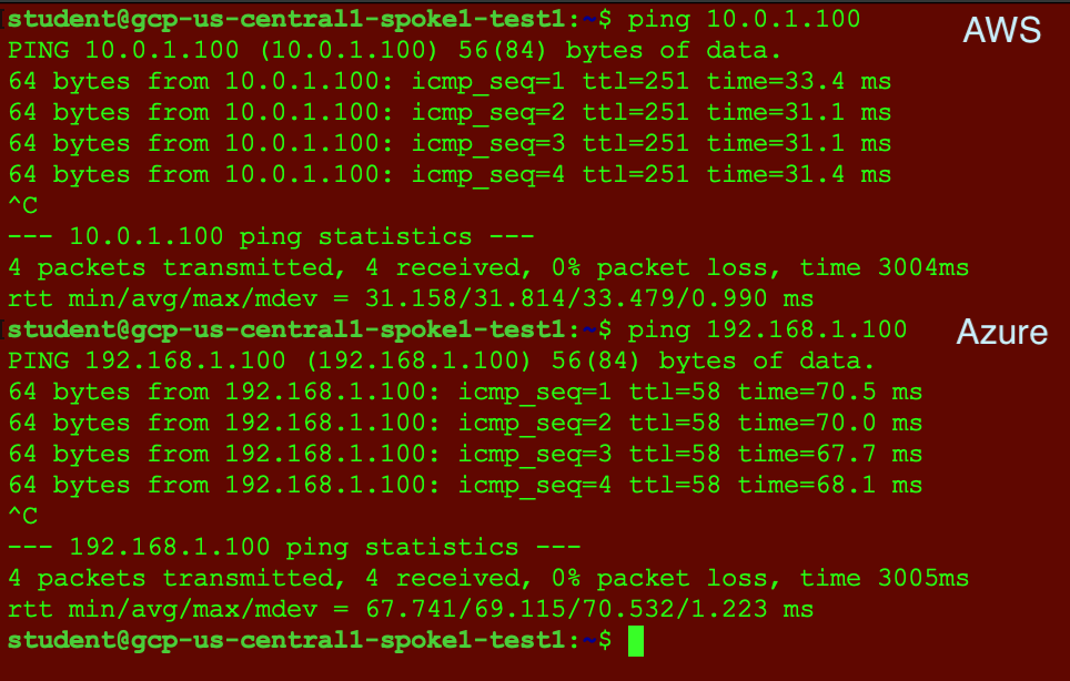 Retest the connectivity; now you will have end-to-end connectivity across a multicloud environment.