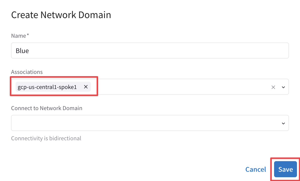 Click Save after creating each Network Domain