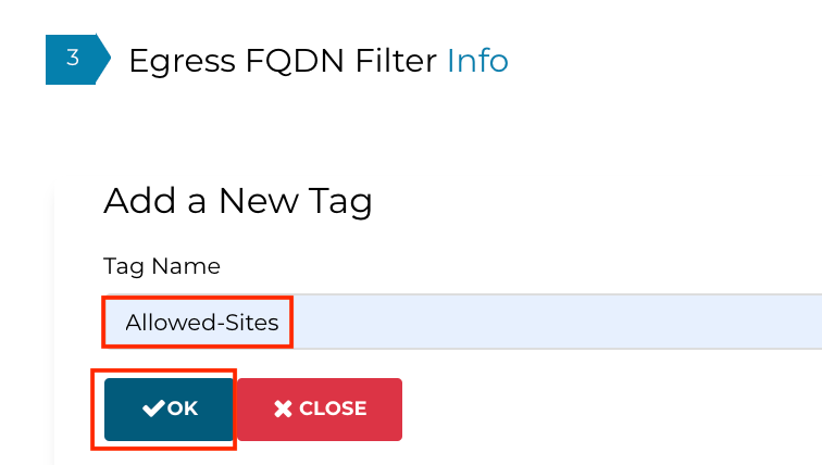 Create a new tag, Allowed-Sites and click OK as shown below:
