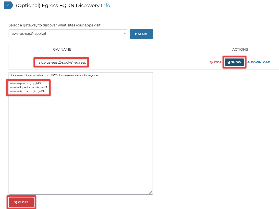 Go to Controller > SECURITY > Egress Control > (Step2) Egress FQDN Discovery