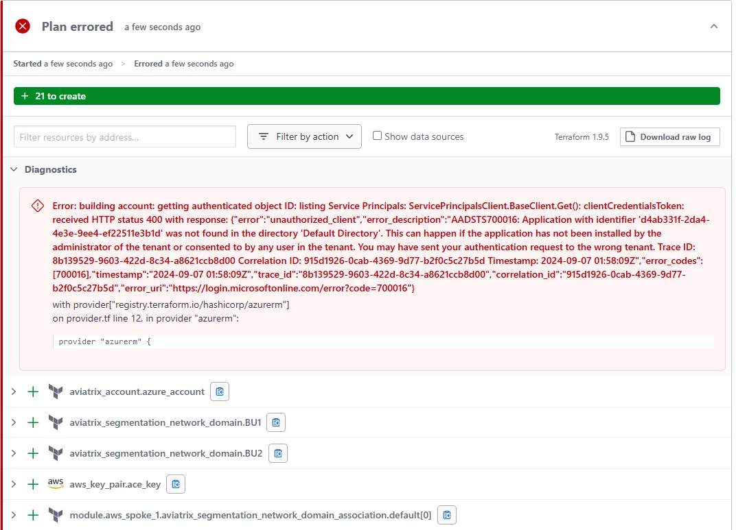 module.aviatrix_controller_aws.module.aviatrix_controller_build.aws_instance.aviatrix_controller: Still creating... [10s elapsed] module.aviatrix_controller_aws.module.aviatrix_controller_build.aws_instance.aviatrix_controller: Creation complete after 12s [id=i-082846b0f48c10f3e] module.aviatrix_controller_aws.module.aviatrix_controller_build.aws_eip_association.eip_assoc: Creating... module.aviatrix_controller_aws.module.aviatrix_controller_build.aws_eip_association.eip_assoc: Creation complete after 2s [id=eipassoc-079ed04b3bf539b67] --> Controller launch failed, aborting.