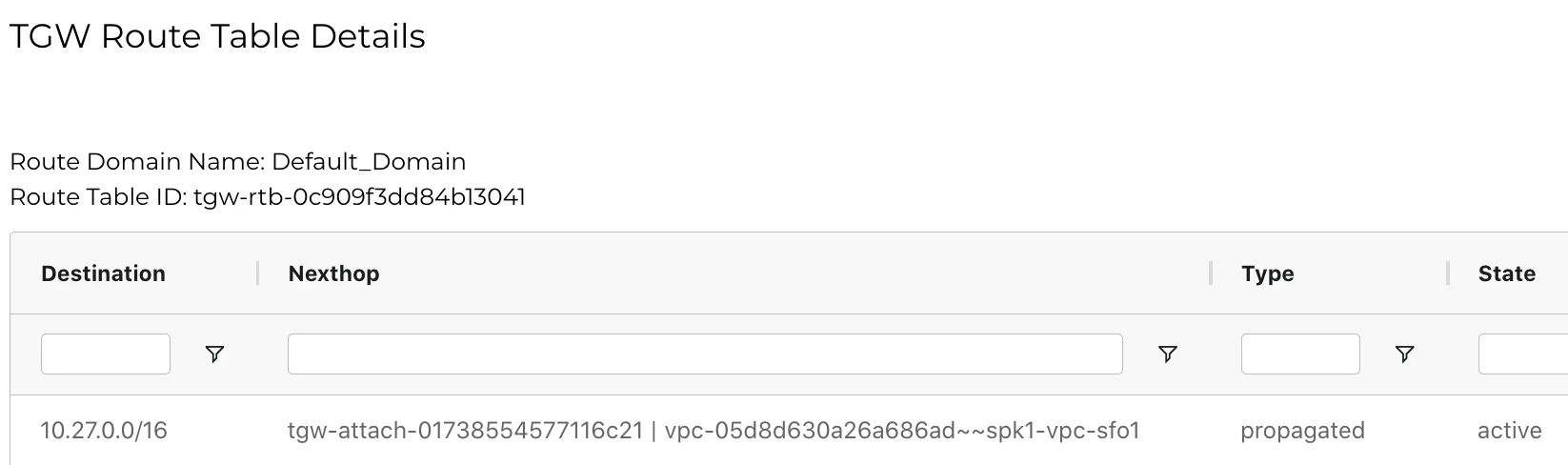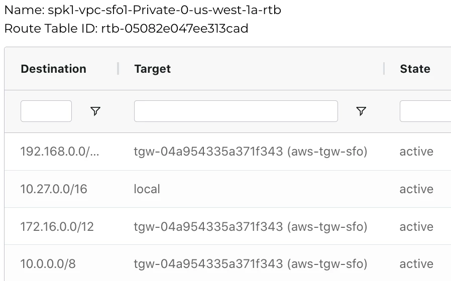 When this feature is enabled, Controller will not program RFC1918 routes in the VPC route table. Also all dynamically learned routes by the AWS-TGW are not programmed into the Spoke VPC route tables.